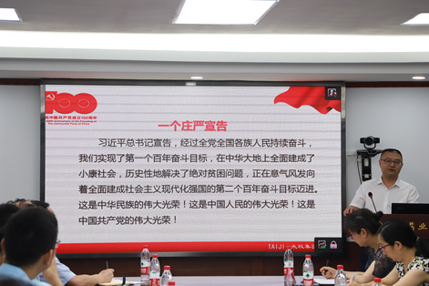 學(xué)習(xí)貫徹“七一”重要講話精神是當(dāng)前和今后一個(gè)時(shí)期的一項(xiàng)重大政治任務(wù),7月7日,公司黨委書記、執(zhí)行董事、總經(jīng)理鮮亞為中層以上干部講授題為《再學(xué)習(xí)再領(lǐng)悟習(xí)近平總書記在慶祝中國共產(chǎn)黨成立100周年大會(huì)上的重要講話精神》的黨課,帶領(lǐng)大家一起回顧了總書記講話中“一個(gè)莊嚴(yán)宣告”、“一個(gè)偉大夢想”、“四個(gè)偉大成就”、“一個(gè)偉大精神”、“九個(gè)必須”、“一個(gè)殷切期望”、“一個(gè)號召”等核心內(nèi)容,并分享了自己學(xué)習(xí)的心得體會(huì)。他談到,中國共產(chǎn)黨新的一百年征程已開啟,以史為鑒,開創(chuàng)未來,為實(shí)現(xiàn)第二個(gè)百年目標(biāo)--全面建成社會(huì)主義現(xiàn)代化強(qiáng)國而催人奮進(jìn),我們處于這個(gè)奮進(jìn)時(shí)代,只有不負(fù)韶華,奮勇向前。7月以來,黨委副書記、常務(wù)副總經(jīng)理徐志謙在綜合四黨支部,黨委副書記、紀(jì)委書記、工會(huì)主席鄧明明在黨群系統(tǒng),黨委委員、副總經(jīng)理何軍為黨外人士,副總經(jīng)理齊云、公司監(jiān)事、代理銷售事業(yè)部總經(jīng)理?xiàng)盍植ㄔ阡N售系統(tǒng),各黨支部書記在所在黨支部,分別就學(xué)習(xí)貫徹習(xí)近平總書記“七一”重要講話精神進(jìn)行了宣講,確保將總書記重要講話精神傳達(dá)到各個(gè)基層組織和一線。