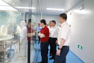 重慶市人民檢察院第一分院黨組成員、副檢察長李榮成,沙坪壩區(qū)人民檢察院黨組書記、檢察長程權(quán)一行參觀粉針劑車間生產(chǎn)現(xiàn)場