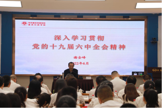 本次活動(dòng)特別邀請(qǐng)了中共重慶市委黨校常務(wù)副校長(zhǎng)、重慶行政學(xué)院常務(wù)副院長(zhǎng)謝金峰講授專題黨課,帶領(lǐng)大家再次深入學(xué)習(xí)貫徹黨的十九屆六中全會(huì)精神。