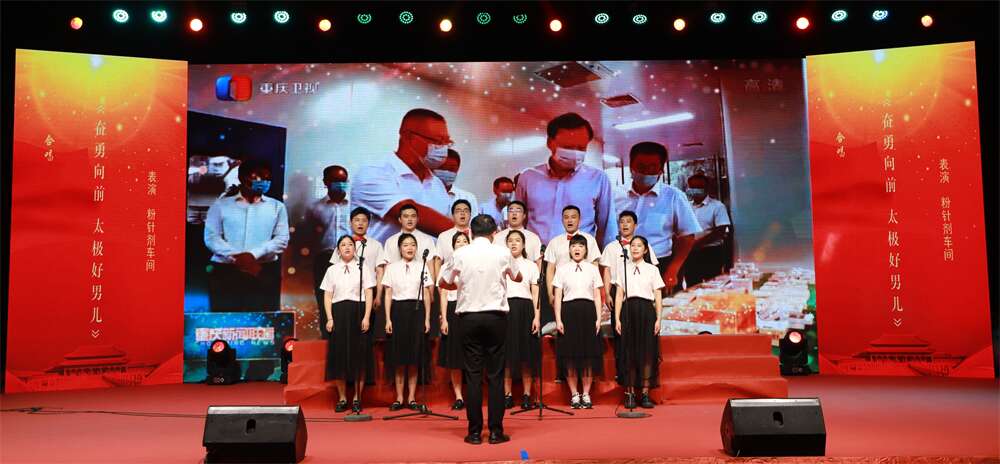 當(dāng)晚,職工歌詠比賽在公司籃球場(chǎng)拉開帷幕,沙坪壩區(qū)人民政府黨組成員吳曉明蒞臨比賽現(xiàn)場(chǎng)觀看表演,歌頌黨的豐功偉績(jī)、歌唱對(duì)祖國(guó)的熱愛,激情傳唱國(guó)藥集團(tuán)《關(guān)愛生命》、國(guó)藥太極《太極好兒男》、西南藥業(yè)《奮勇向前》三首企業(yè)之歌,13支職工隊(duì)伍參加了本次比賽,評(píng)委由各分工會(huì)推薦的職工代表組成。