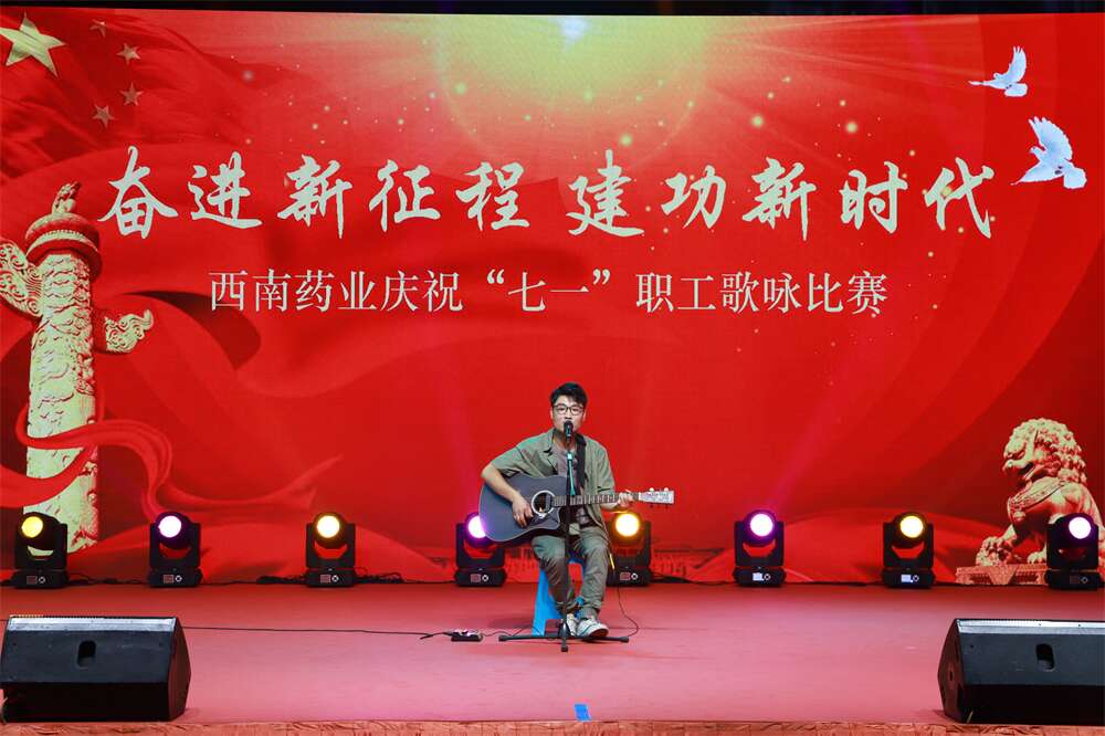 動(dòng)人深情的歌曲《關(guān)愛生命》代表了國(guó)藥人關(guān)愛生命,呵護(hù)健康的企業(yè)理念;鏗鏘有力的歌聲,唱出了《太極好兒男》拼搏市場(chǎng)、勇敢堅(jiān)毅的精神;激情澎湃的《奮勇向前》,代表了西南藥業(yè)兒女不畏艱辛、奮力拼搏的決心斗志。此次比賽更有創(chuàng)意節(jié)目個(gè)人彈唱改編、搖滾架子鼓小合唱、詩(shī)朗誦等精彩紛呈,職工評(píng)委演唱的《紅旗飄飄》,《親愛的中國(guó)》更是將整場(chǎng)演出推向高潮。歌聲里贊頌的,是一代又一代熱血的共產(chǎn)黨人為國(guó)家富強(qiáng)接續(xù)奮斗的壯麗畫卷;歌聲里贊頌的,是一代又一代西南藥業(yè)人努力拼搏、奮勇向前的堅(jiān)韌力量。