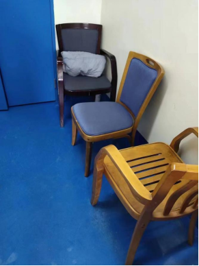 粉針劑車間、小容量注射車間、大容量注射劑車間及動(dòng)力車間共11位同志被封控在廠里,晚上睡覺只能將就拼湊起幾把椅子。一時(shí)間,解決吃住問題,成了頭等大事。