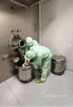 工人正在處理物料出料轉(zhuǎn)運(yùn)儲(chǔ)存工作