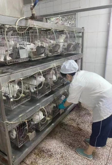 質(zhì)控部職工喂養(yǎng)實(shí)驗(yàn)兔