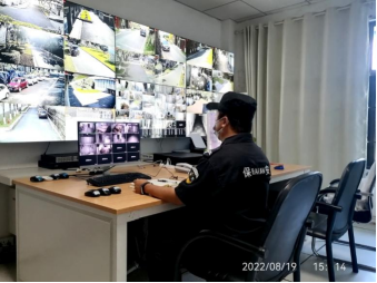 保安正在監(jiān)控廠區(qū)