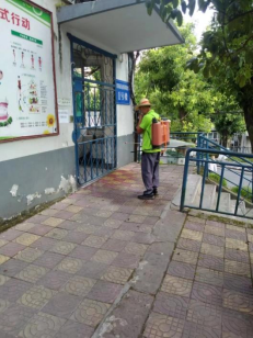 物業(yè)工人正在進(jìn)行綠化抗旱和全面消殺