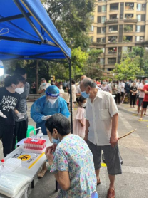經(jīng)過簡(jiǎn)單分工,沈楠與同伴們開始“掃樓”。面對(duì)全員核酸,居民們顯得萬分焦急和慌張:有臥床病人怎么辦?孩子太小怎么辦?有孕婦怎么辦?黃碼了怎么辦?傳染了怎么辦……重復(fù)的問題和炎熱的天氣讓沈楠忙得焦頭爛額,但這并不能阻擋他為群眾服務(wù)的熱情。心平氣和細(xì)心解釋,幫助困難群眾聯(lián)系上門服務(wù)……一直忙到23:38結(jié)束,終于完成一千余戶居民通知工作。第二天清晨6:00,沈楠又準(zhǔn)時(shí)出現(xiàn)在核酸檢測(cè)現(xiàn)場(chǎng),直至社區(qū)全員檢測(cè)結(jié)束。