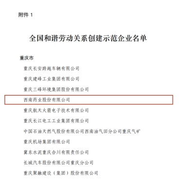 喜報(bào)|西南藥業(yè)被命名為全國(guó)和諧勞動(dòng)關(guān)系創(chuàng)建示范企業(yè)