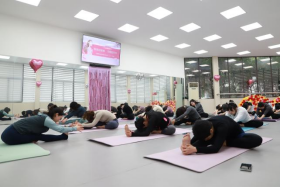 3月8日上午,在美麗的花環(huán)、漂亮的彩帶、粉嫩的氣球裝飾一新的公司多功能排練室里,迎來了二十多位健康女神,大家跟隨專業(yè)金牌教練陽陽老師,通過一堂生動(dòng)的瑜珈體驗(yàn)課,圍繞“陽康”后健康運(yùn)動(dòng)分享的知識(shí)小課堂讓大家受益匪淺。舒緩的動(dòng)作,輕柔的音樂,在平和的呼吸之間,美麗的陽陽老師將適用于日常鍛煉的女性健康運(yùn)動(dòng)小知識(shí)娓娓道來,還將瑜伽鍛煉的每一個(gè)分解動(dòng)作對(duì)女性身體各部位的改善和幫助一一講解,在疫情防控常態(tài)化的當(dāng)下讓大家更加聚焦健康、關(guān)愛自己。