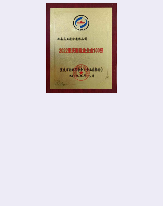 喜報 西南藥業(yè)榮獲2022重慶制造業(yè)企業(yè)100強